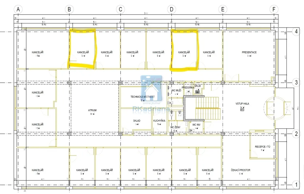 K dispozici jsou dvě kanceláře. Cena uvedena za náklady na jednu kancelář.