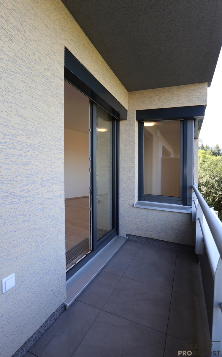 Moderní kuchyňská linka je vybavena elektrickou troubou, varnou deskou, lednicí s mrazákem, myčkou a mikrovlnkou. Kuchyně poskytuje dostatek úložného a pracovního prostoru. Z pokoje se vchází na balkon, který je orientovaný na severozápadní stranu, do zeleně. Velká okna v bytě poskytují dostatek světla a hezký výhled do otevřeného prostoru. Podlahy jsou vinylové, v bytě je podlahové topení.