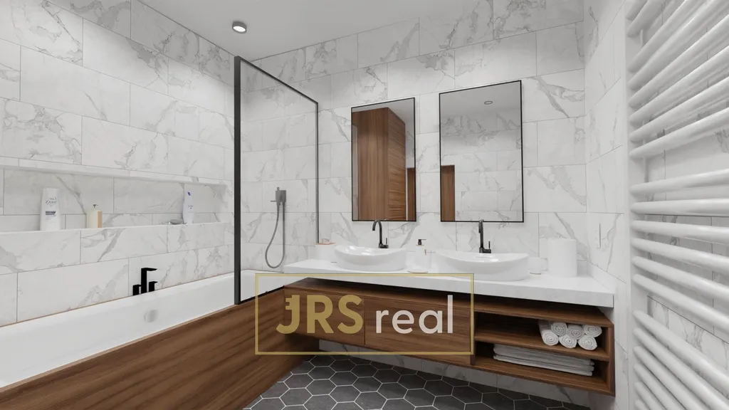 Velký důraz je kladen na moderní technologie a nízké provozní náklady. Dům je navržen jako energeticky úsporný s přípravou na instalaci fotovoltaické elektrárny (FVE). Součástí je také retenční nádrž na dešťovou vodu, kterou lze využít pro chod domácnosti i závlahu zahrady. Tepelné čerpadlo Buderus zajišťuje ohřev vody i teplovodní podlahové vytápění v celém domě, což oceníte v každém ročním období. Komfort bydlení dále zvyšuje rekuperace vzduchu a příprava na klimatizaci.