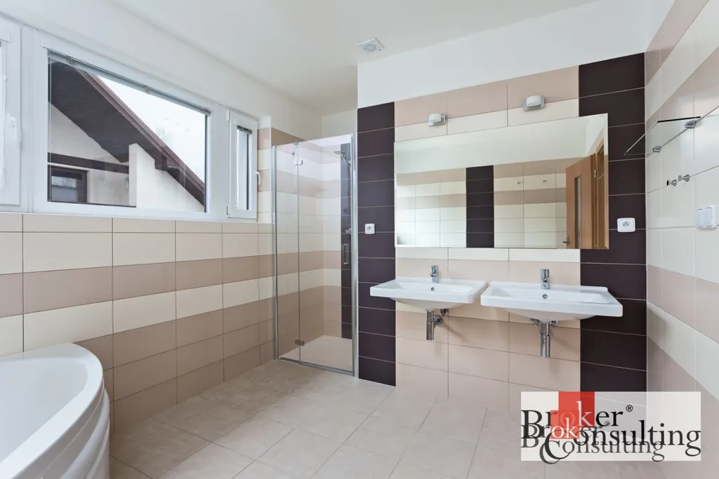 Po vstupu do domu na Vás dýchne dispozičně perfektně řešené přízemí s pracovnou/pokojem, obývacím pokojem, s výhledem na zahradu a prostornou moderní kuchyni. V přízemí najdeme koupelnu se sprchovým koutem a WC. Z kuchyně je vchod do velké garáže, která se nachází v podzemním podlaží. Garáž disponuje místností pro uloženích sezónního vybavení. II.NP má 3 prostorné pokoje, každý z nich má vlastní šatnu.