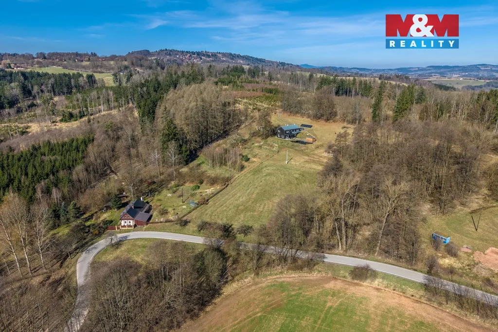 Nabízíme k prodeji novostavbu moderního domu na klíč s pozemky o celkové výměře 3.794 m2. Jedná se o jedinečný architektonický projekt vytvořen pro rodinnou rekreaci, ale lze jej užít také pro trvalé bydlení. Dominantou je celoprosklený štít s konstrukcí z masivních trámů. Při vstupu do domu se ocitnete v zádveří s prostorem na věšák, botník a velkou skříň. Hned za krátkou zástěnou se nachází kuchyň ve tvaru L. Naproti kuchyni je umístěna koupelna s toaletou, umyvadlem a sprchovým koutem. Druhou částí dolního patra domu je obývací pokoj s jídelnou a schodiště do horního patra. Z obývacího pokoje se dostanete na venkovní dřevěnou terasu, která může být zastřešená sluneční clonou. V podkroví jsou umístěny dvě ložnice. V samém středu domu je pak navrženo umístění krbových kamen, která dotvoří dokonalou atmosféru pro odpočinek a relaxaci. Cena obsahuje rozsáhlý pozemek a stavbu domu na klíč včetně stavebního povolení.