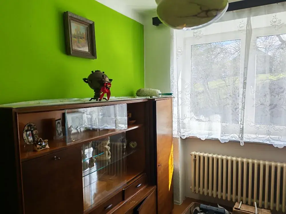Okna plastová, podlahy - parkety, lino a dlažba. Radiátory litinové, kamna v kuchyni na TP.