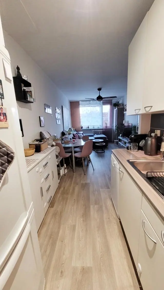 Exkluzivně nabízíme k pronájmu byt s jihovýchodní orientací o dispozici 2+KK s rozlohou 46 m2 (obytná plocha 44,6 m2) jejíž příslušenství tvoří sklepní kóje v lokalitě Praha 10 - Hostivař. V bytě proběhla kompletní rekonstrukce koupelny včetně rozvodů, podlahové krytiny tvořeny kombinací dlažby a PVC. Před předáním bude byt znovu vymalován. Součástí nájmu je kompletní vybavení kuchyně, vestavěné skříně v předsíni. Od stávajícího nájemce je možné odkoupit sedací soupravu a nízké skříňky v kuchyni. Byt je situovaný do 2. nadzemního podlaží z celkových osmi podlaží panelového domu s výtahem. Dům je po kompletní a vydařené rekonstrukci. Součástí rekonstrukce byly například i předokenní žaluzie s elektrickým pohonem. Měsíční nájemné ve výši 15.900,-Kč + poplatky ve výši 3.600,-Kč. Odběr elektřiny a plynu budou převedeny na nájemce. Současná záloha na elektřinu je ve výši 1.100,-Kč a plynu 400,-Kč. Dodávku televizních a datových služeb si nájemce zajistí samostatně. K dispozici je připojení od více poskytovatelů například Vodafone, T-mobile atd.. Energetická náročnost budovy je s hodnotou D . Kauce ve výši dvojnásobku nájemného, provize ve výši jednoho nájmu + DPH. Volné k nastěhování od 22.4.2026. Pro více informací či se zájmem o prohlídku nás neváhejte kontaktovat. Veškerá občanská vybavenost v nedalekém okolí, dopravní obslužnost zajištěna četnými tramvajovými či autobusovými spoji. Bezproblémové parkování u domu bez modrých zón.