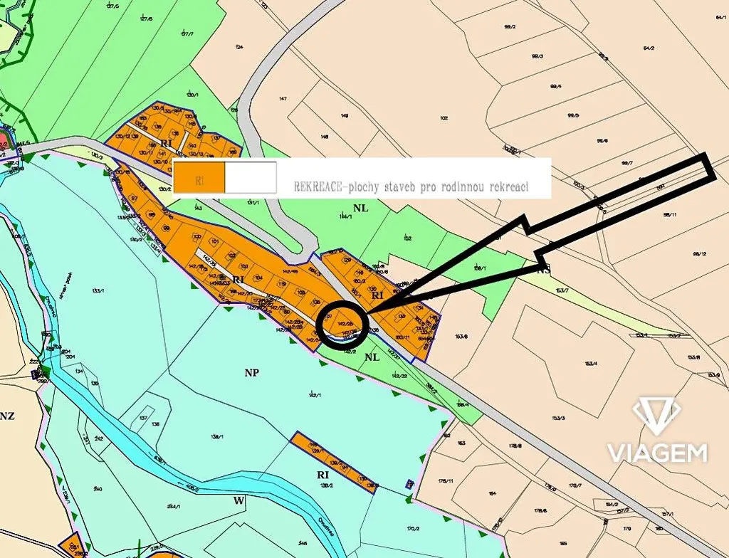 Pozemek je vhodný dle ÚP pro rekreaci, zastavěnost pozemku je stanovena limitem 20%. Podlažnost je zde max 1.NP a podkroví.