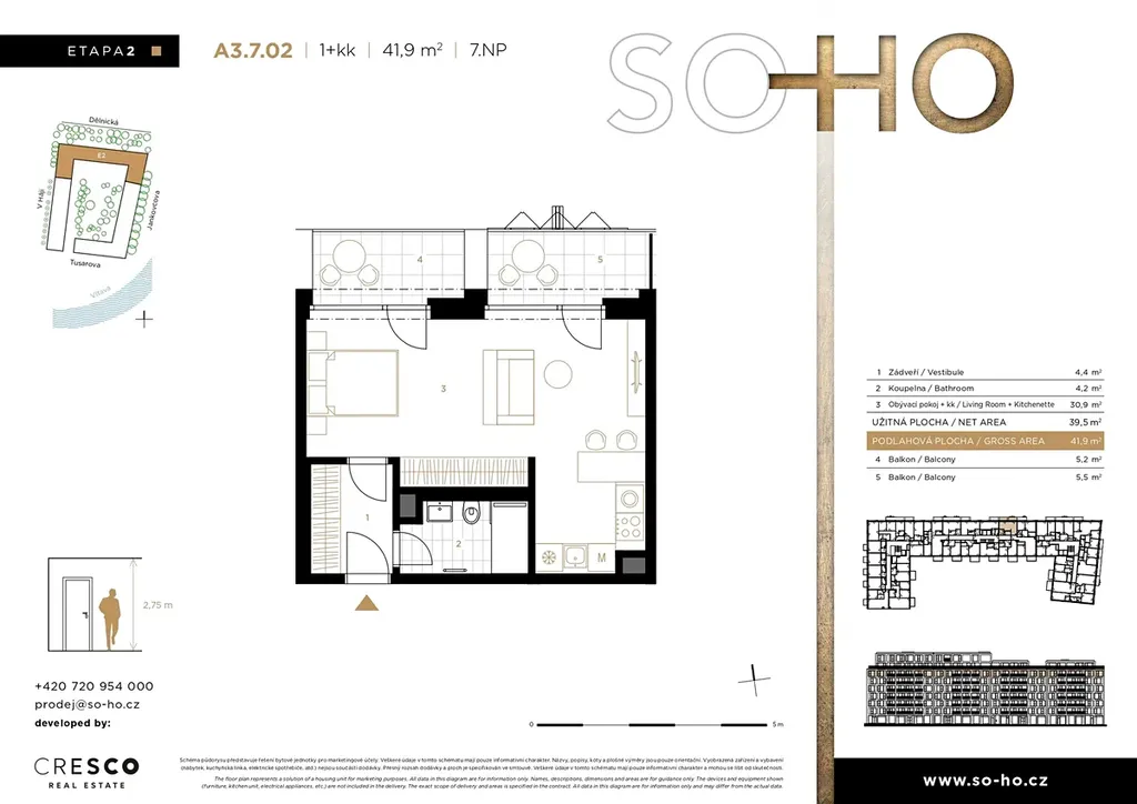 Více informací o tomto bytě, projektu a aktuální nabídce bytů z 2. etapy najdete na webových stránkách projektu. Rádi vás přivítáme také v našem prodejním centru: