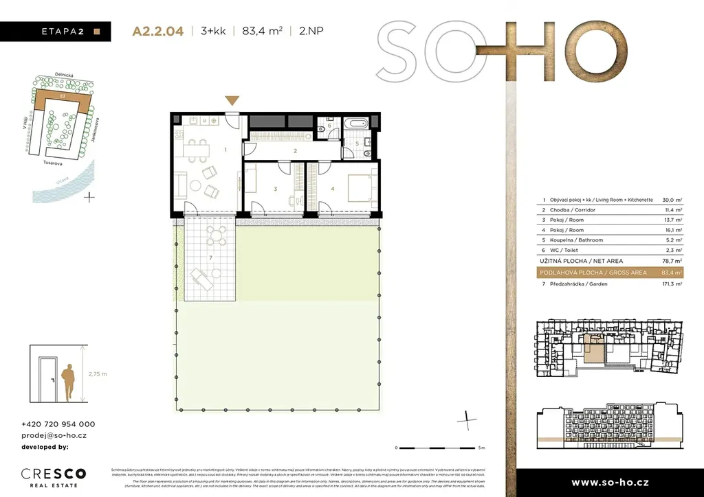 Více informací o tomto bytě, projektu a aktuální nabídce bytů z 2. etapy najdete na webových stránkách projektu. Rádi vás přivítáme také v našem prodejním centru: