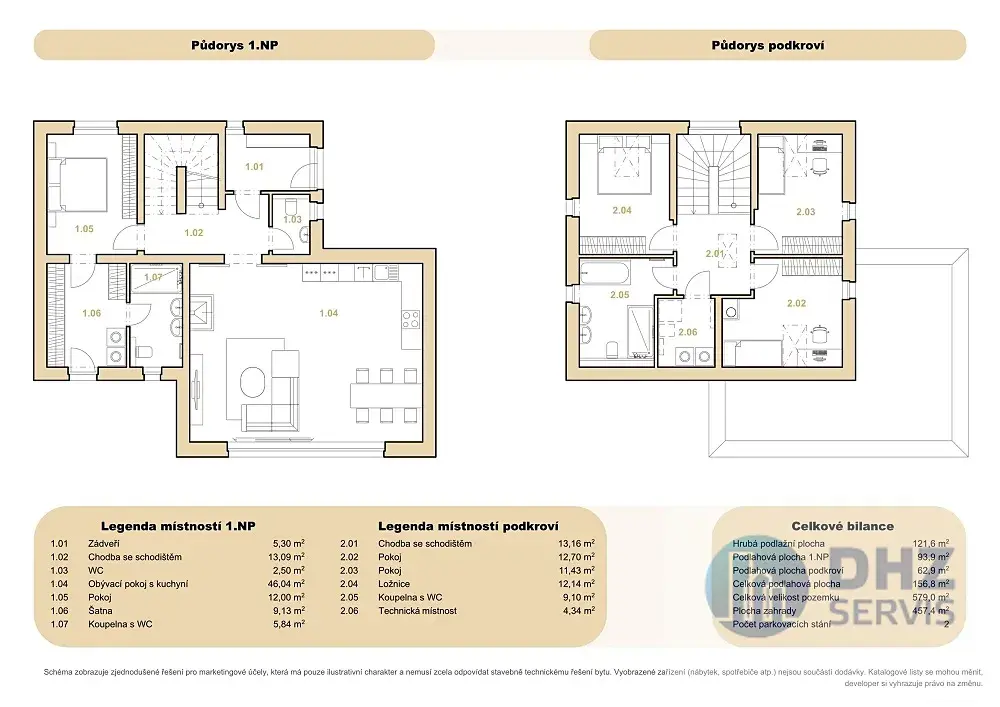 Plocha domu 167,8 m2, zastavěná plocha 122 m2, terasa 26 m2, pozemek 689 m2.