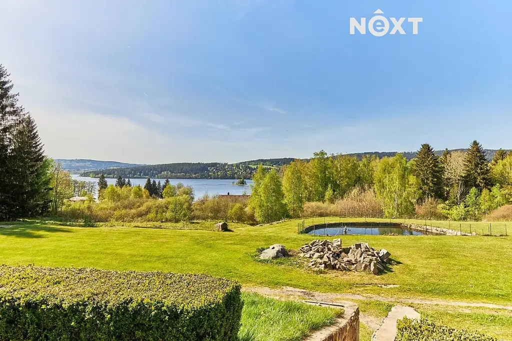 Exkluzivně nabízím k prodeji nádhernou chalupu na ještě nádhernějším místě s výhledem na jezero Lipno. Chalupa je s péčí švýcarských hodinářů budována od konce 80. let včetně kompletního vybavení. Na zastavěné ploše 93m2 se vypíná unikát o dispozici 41 a obytné ploše 141m2. Na pozemcích o celkové výměře 9378m2 se dále nachází jezírko s přirozeným přítokem s okolních lesů, rafinovaně zabudovaná dvougaráž do sklonu terénu a nádherný kamenný altán pro grilování s přáteli a opět krásným výhledem na jezero a Králičí ostrov. Obrovským potenciálem je pozemek 9378m2, který je z velké části zastavitelný dalšími stavbami. Přístup na koncový pozemek je z obecní komunikace. Jedinečná chalupa je vytápěná vybudovaným krbem v obývacím pokoji. Doporučuji osobní prohlídku tohoto krásného místa. Pro komunikaci uvádějte evidenční číslo zakázky N105173.