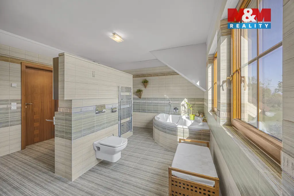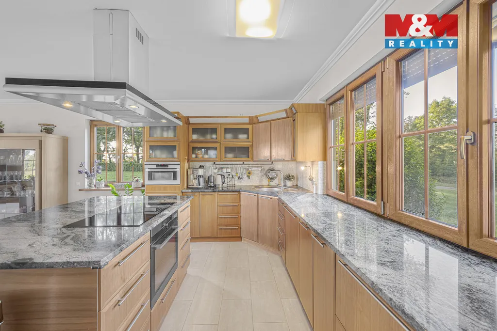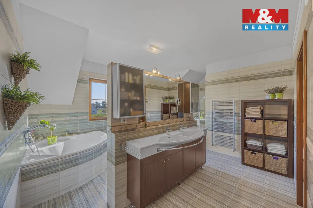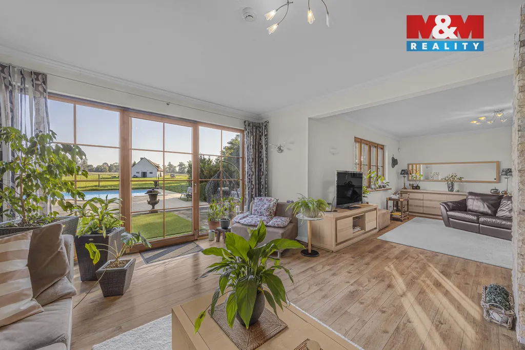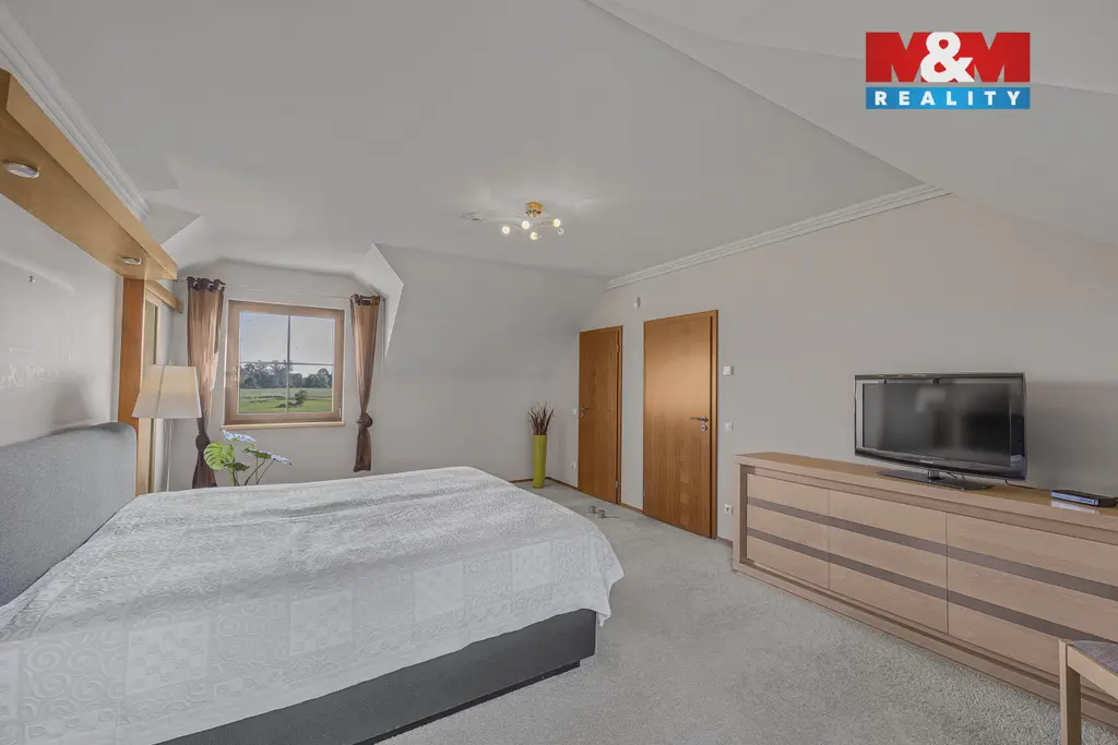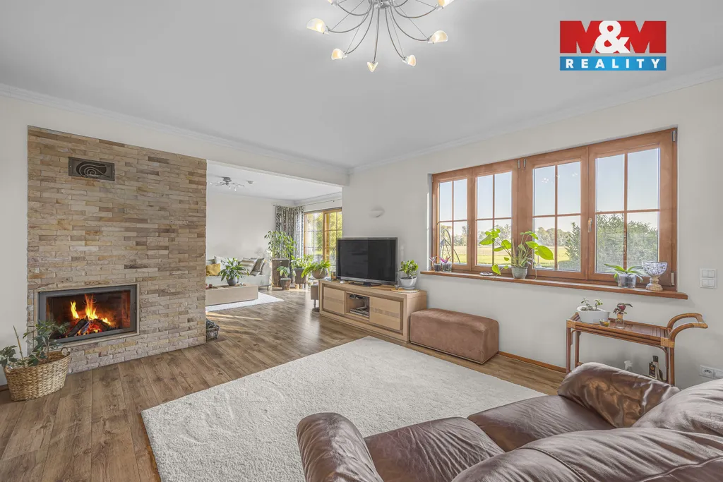 Dům je dvoupodlažní, zkolaudovaný v roce 2010. V přízemí se nachází prostorný obývací pokoj s proskleným krbem, kuchyň s ostrůvkem, koupelny, samostatná WC, pokoj, kancelář a technické zázemí. V patře je 5 pokojů, velká chodba a dva balkony. Součástí je zabezpečení, venkovní rolety, internet a satelit. Půda nabízí možnost dalšího rozšíření.