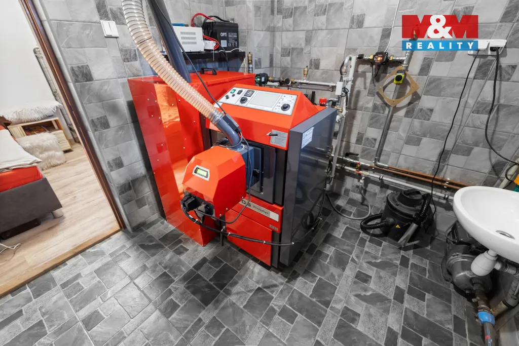 Dům disponuje novým úsporným kotlem na pelety, který zajišťuje efektivní a ekonomické vytápění. Velkou výhodou je prostorná půda, která nabízí možnost vybudování další obytné části dle vlastních představ.