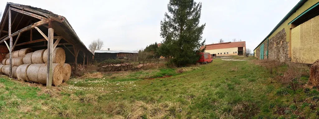Původní zemědělský areál se skládá z budov nebytového charakteru a aktuálně využíváno pro ustájení koní ( viz foto ), dále jako bezsloupová hala - sklad, a Otevřený objekt stodoly, seníku a drobného živočišného chovu. Objekty jsou zkolaudovány a legálně pronajaty, popř. volné pro další využití. Areál zpřístupněn ze dvou stran a vjezdný pro veškerou nákladní dopravu. Ing. sítě 220/380V, studna - voda, kanalizace - jímka. Objekt vhodný pro zemědělskou, živočišnou a investiční ( novou ) výstavbu. Stávající budovy - zastavěná plocha : cca 1.500 m2. Po projednání se spádovými úřady a se zastupiteli obce (města) je veliká pravděpodobnost o možnosti and #34;dostavby and #34; stávajících budov ! ........ Dnes zastavěno cca 12% z celého areálu, popř. 31% v části dvůr a budovy. Prodej a jednání možné IHNED.