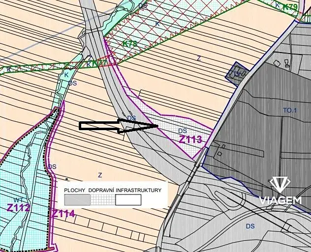Územní studie: K pozemku je zpracovaná územní studie s návrhem na rozvoj dopravní infrastruktury, což zvyšuje jeho hodnotu a stabilitu investice.
