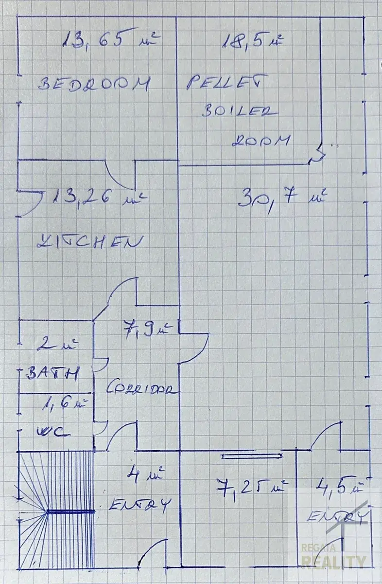 Přízemí se skládá ze vstupní haly, pokoje, kuchyně, koupelny a samostatné toalety. Dále se zde nachází kotelna s automatickým peletovým kotlem (2020) a solárním ohřevem vody (500 l), vedle níž je v současné době hobby místnost (např. na stolní tenis nebo řemeslnou dílnu) s dřevěnými posuvnými dveřmi. Tyto prostory, stejně tak i půdu, lze případně přestavět další obytné místnosti!!