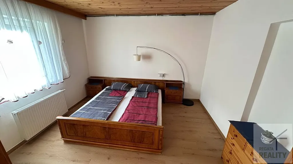 V horním patře najdete další obytný prostor o rozloze 106 m² s kuchyní, obývacím pokojem, tří ložnic, koupelny a balkonu s krásným výhledem orientovaným na jih. Dům je celkově ve velmi dobrém a udržovaném stavu. Součástí jsou i zastřešená parkovací místa pro 3 vozy.