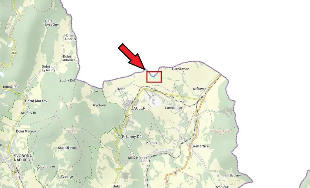 V exkluzivním zastoupení majitele nabízíme pozemek o výměře 5 520 metrů čtverečních v klidné okrajové části obce Černá Voda u Žacléře okres Trutnov