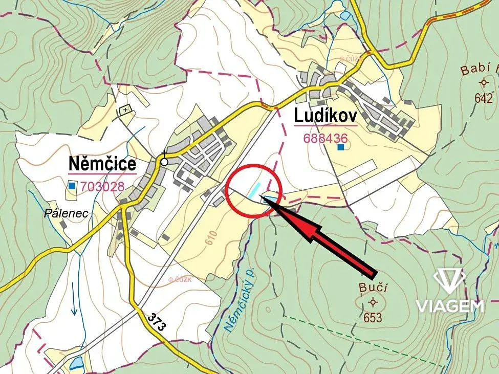 Tento pozemek je zapsán na LV 397 s parcelním číslem 1611 o celkové výměře 2851 m².