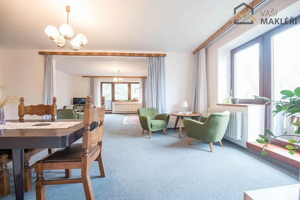 Pronájem prostorného bytu 3+1/B v samostatném RD, 123 m2, vlastní posezení před domem, přímo u přírodní rezervace Praha - Nebušice. Nabízíme k pronájmu prostorný byt o velikosti 3+1/B, 123 m2 nacházející se v samostatném rodinném cihlovém domě v zajímavé lokalitě Praha Nebušice. Před domem je k volnému užití zahrada a případně posezení se zámkovou dlažbou, který vyzývá večerním grilováním a možnému posezení v teplých měsících. Vchodovými dveřmi vstoupíte do chodby, odkud se dostanete, do kuchyně a do prostorné obývací části vybavené pohovkou. Kuchyň je vybavena kuchyňskou linkou se sporákem, volně stojící lednicí a jídelním stolem se židlí a kuchyňskou lavicí. V koupelně je také pračka. Z obývací místnosti můžete vstoupit na balkon. Na podlahách bytu je kombinace koberce a dlažby. Byt je vytápěn společným plynovým kotlem. Velkou výhodou bytu je i atraktivní lokalita pražských Nebušic, což je čtvrť s veškerou občanskou vybaveností. Měsíční nájemné činní 34.900 + zálohy na energie stanovujeme na 10.000,- (vytápění, elektřina, vodné, stočné, úklid společných prostor). Dále je nutné počítat s kaucí 2 měsíčních nájmů a úhradu provize RK ve výši jednoho nájmu. Pokud by bylo potřeba, lze po domluvě parkovat vozidlo na pozemku u domu.
