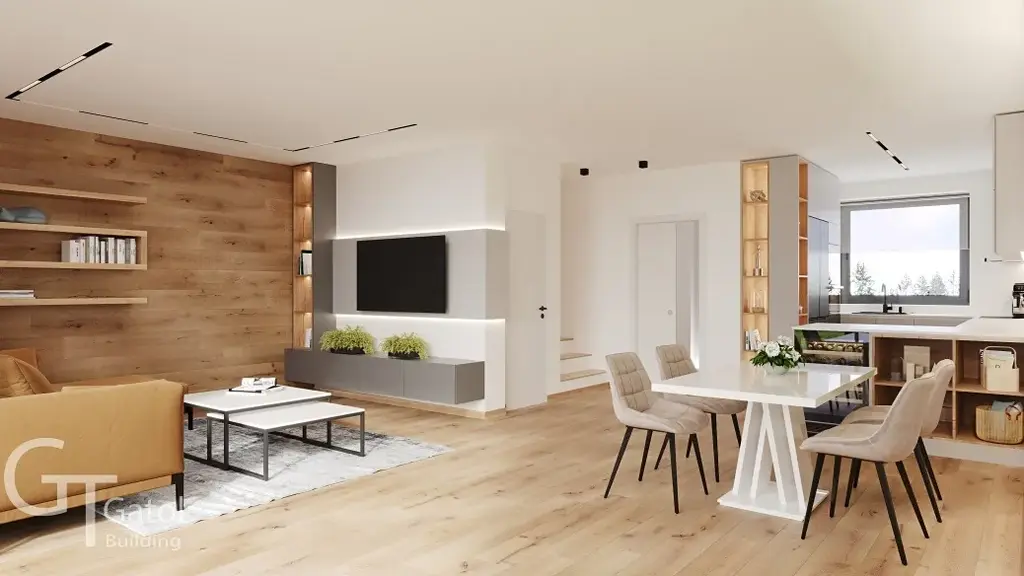 Dům je vybaven garáží s jedním parkovacím místem a dalším parkováním pro dva vozy před domem, což zajišťuje pohodlné parkování i pro větší rodinu nebo návštěvy. Bezbariérový přístup je samozřejmostí, což zvyšuje komfort a dostupnost pro všechny členy domácnosti. Výhodou je také jeho umístění v zástavbě pro bydlení, které se pyšní klidnou atmosférou s dobrou dopravní dostupností, ať už prostřednictvím vlaku, dálnice, silnice či autobusu.