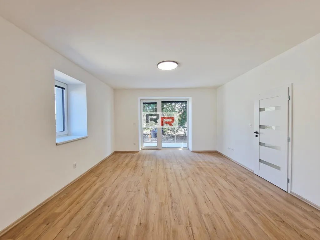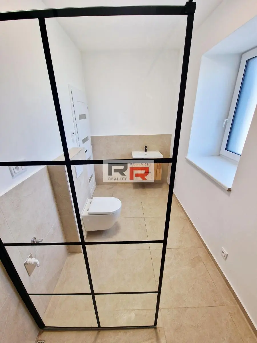 Pronájem bytu 2+KK o velikosti 75m2 s prostornou terasou o velikosti 20m2 ve Šternberku - ul. Uničovská. Jedná se o kompletně zrekonstruovaný nový byt v přízemí cihlového bytového domu s celkem 6 bytovými jednotkami. Na podlaze je vinyl. podlaha a a dlažba. Jádro je zděné se sprchovým koutem, přípojkou na pračku a wc dohromady. Ložnice je neprůchozí o velikosti 21m2 a lze případně rozdělit příčkou na dva pokoje, obývací pokoj s kuchyň. koutem je průchozí a má velikost 42m2. Z obývacího pokoje i ložnice je vstup na terasu s výhledem do zahrady. Byt se pronajímá nezařízený, k dispozici je pouze kuchyň. linka na míru včetně varné desky, trouby a digestoř.