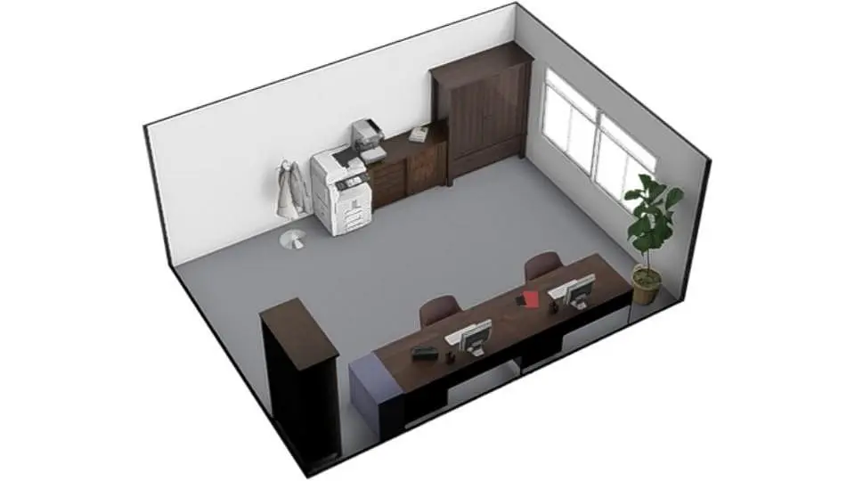 Celková plocha kanceláře činí cca 18,57 m².