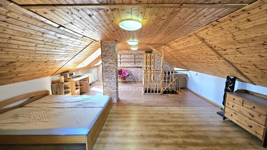 ✔ prostorný podkrovní pokoj s krásným výhledem (ideální jako dětský pokoj, pracovna či ateliér)