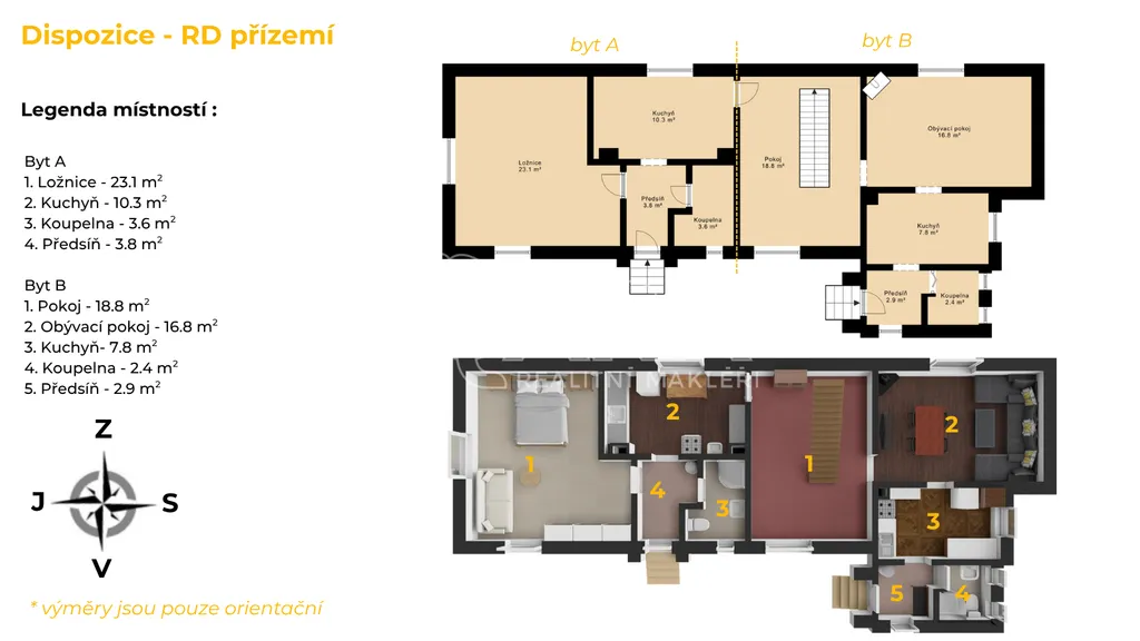 ✅ DISPOZICE DOMU - Dům tvoří dvě samostatné bytové jednotky s možností propojení: