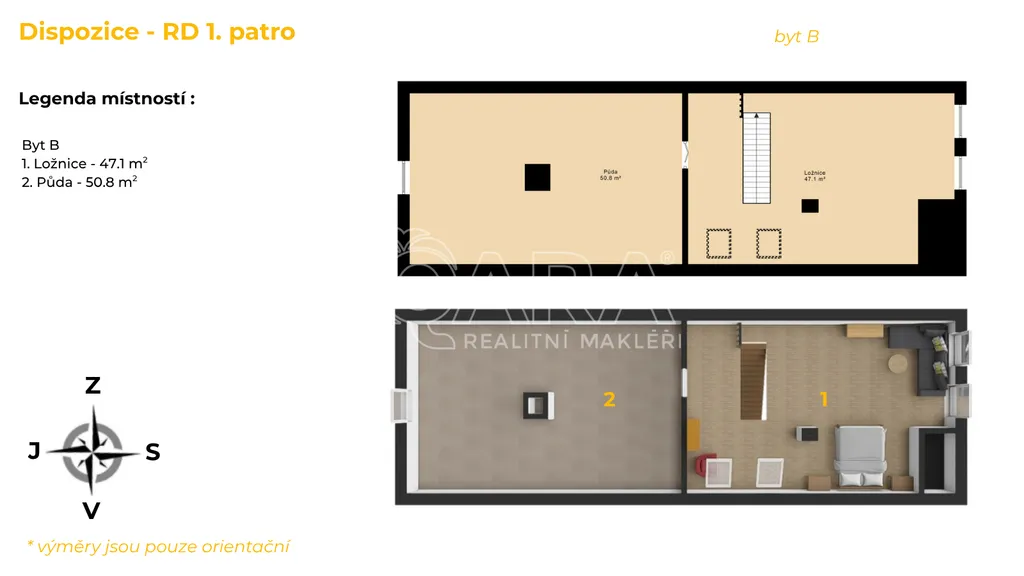 Byt B – 3+1 (96 m², přízemí + podkroví)