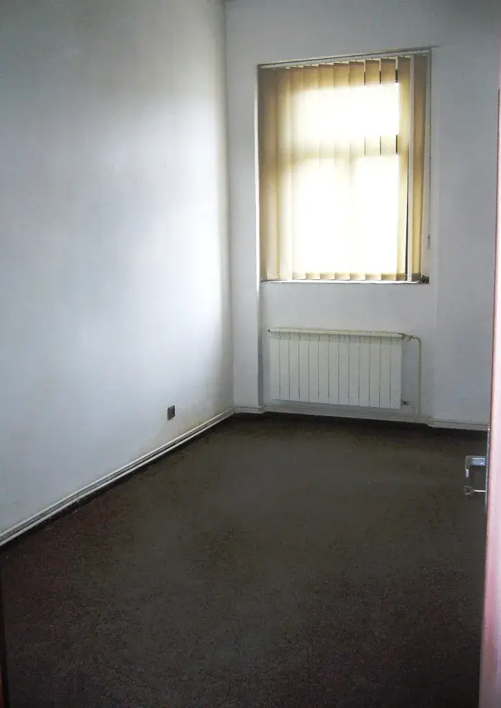 Malý kuchyňský kout s linkou, sporákem a lednicí je propojen s prostorným obývacím pokojem se 3 okny.
