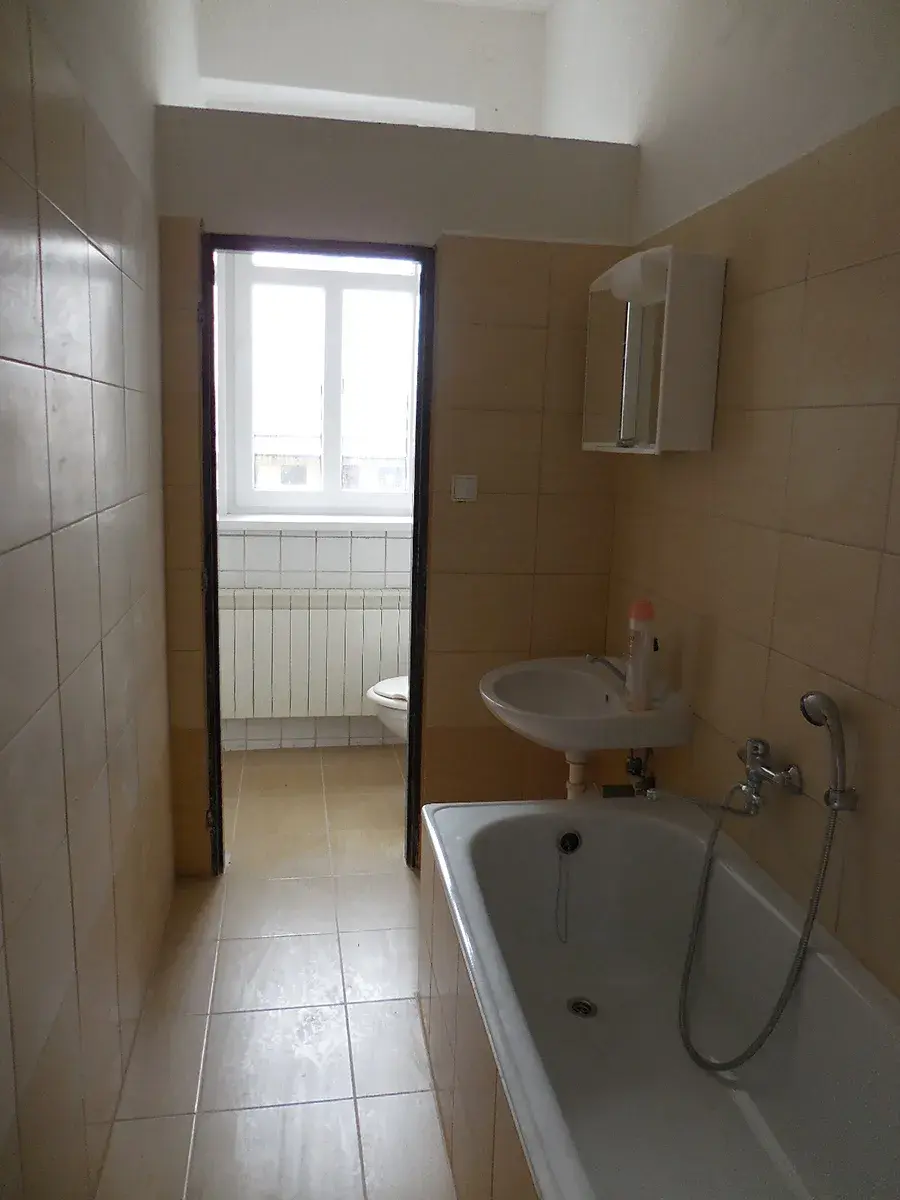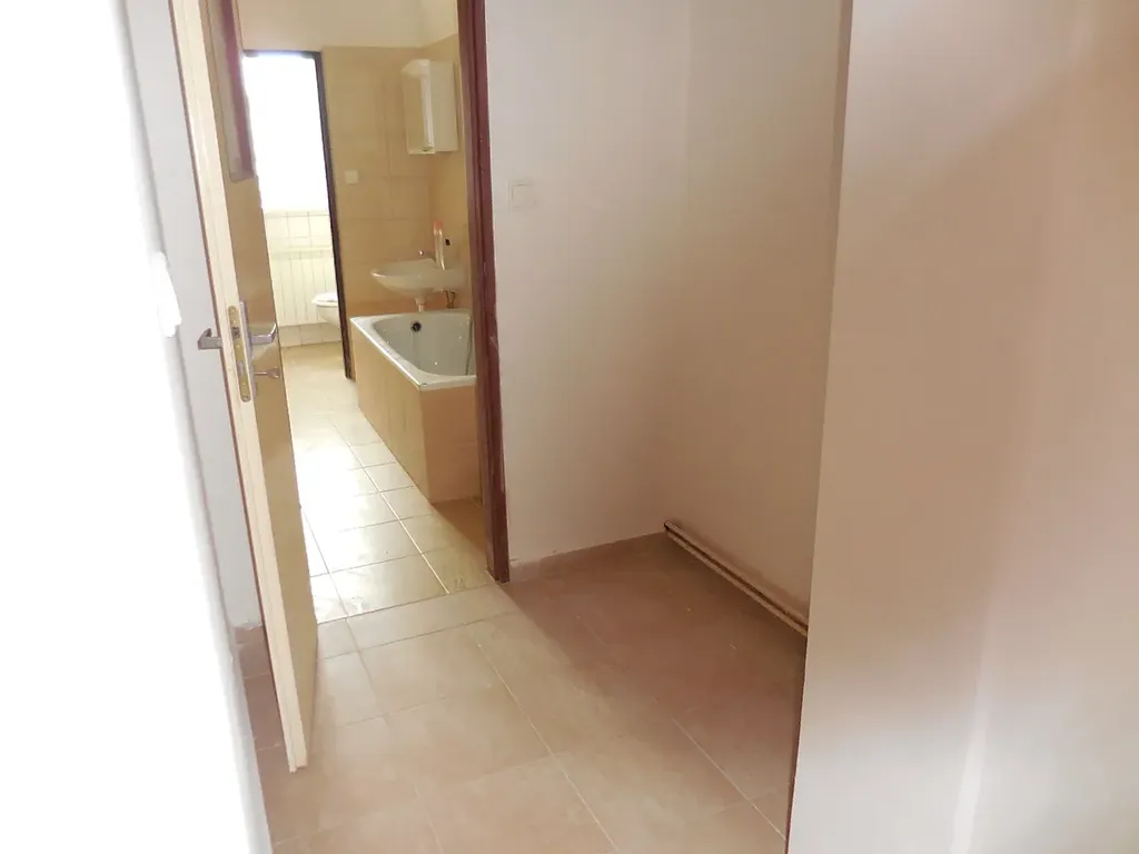 Dále je v bytě předsíň s dostatkem místa na skříně a prostorná koupelna s vanou, u toalety je okno.