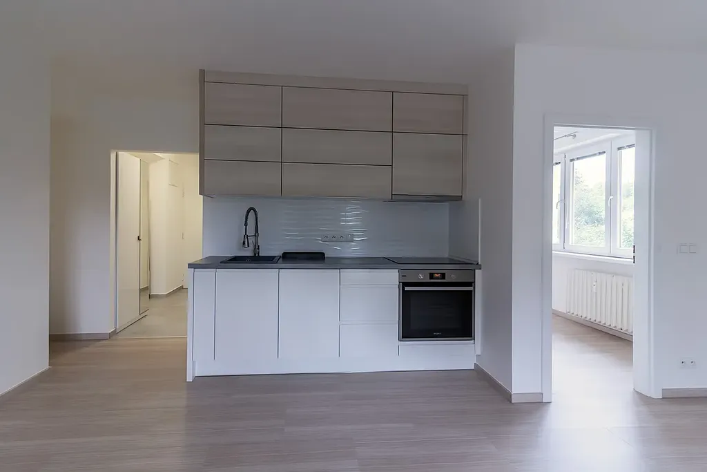 Nabízíme k prodeji světlý byt 3+kk v osobním vlastnictví o celkové ploše 61,3 m² (byt včetně sklepu 2 m²) s balkonem 2,7 m², v ulici Gončarenkova v Praze 4 – Podolí.