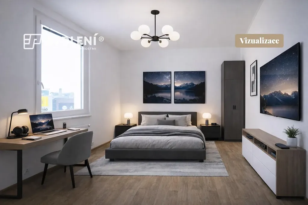 Dispozice bytu je navržena s důrazem na soukromí jednotlivé pokoje jsou velmi dobře oddělené, stejně tak je oddělena koupelna od toalety, což zvyšuje komfort každodenního bydlení. Byt tak působí funkčně, přehledně a nabízí příjemné uspořádání prostoru.