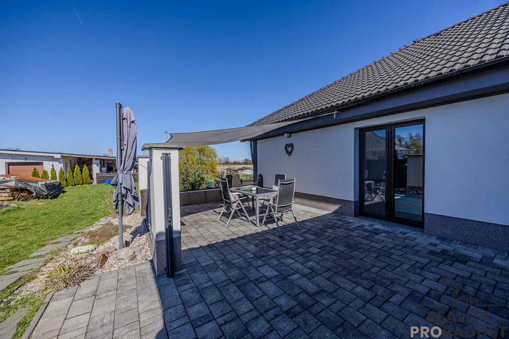 Prostorný moderní rodinný dům typu bungalov s velkou garáží a zahradou v klidné části Nové Bělé, pár minut od Ostravy i Frýdku - Místku. Ideální pro rodinu nebo kombinaci bydlení a práce či podnikání z domova.