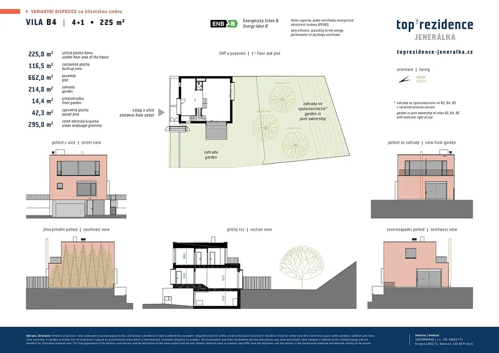 Samostatně stojící vila s označením TRJE.B4, s dispozicí 5+kk s užitnou plochou 225,6 m2 a se zahradou 214,8 m2 je navržena architektonickým ateliérem Abtsmolen v duchu koncepce Raumplanu.