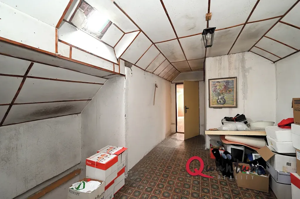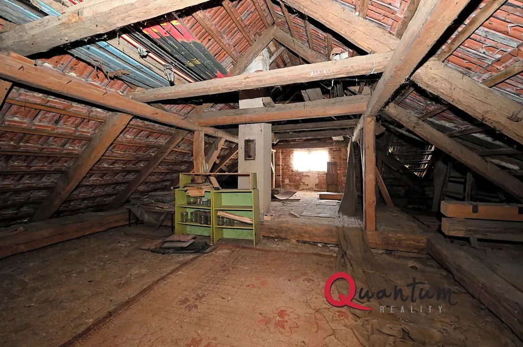 Podkroví, které zasahuje i nad hospodářskou část, nabízí kromě uvedeného pokoje také velkorysý půdní prostor vhodný k vestavbě.