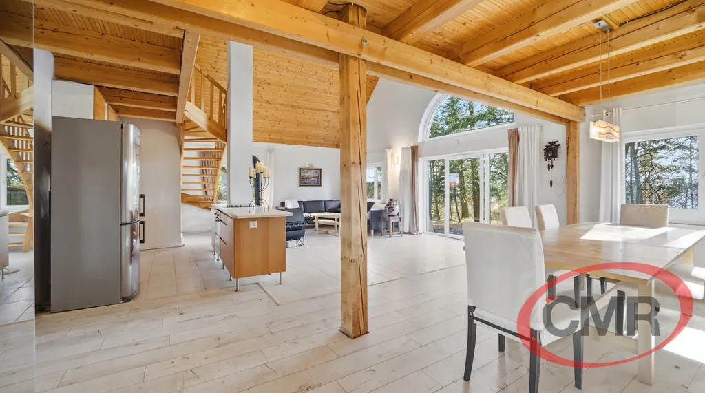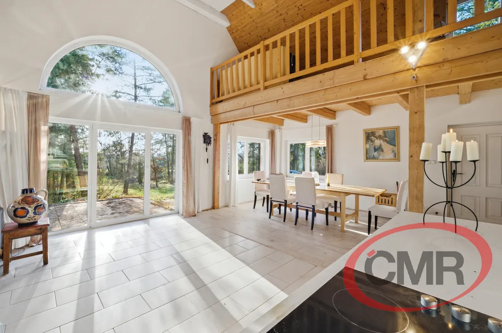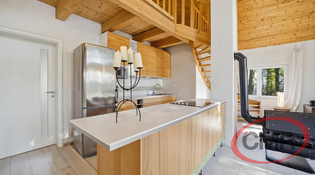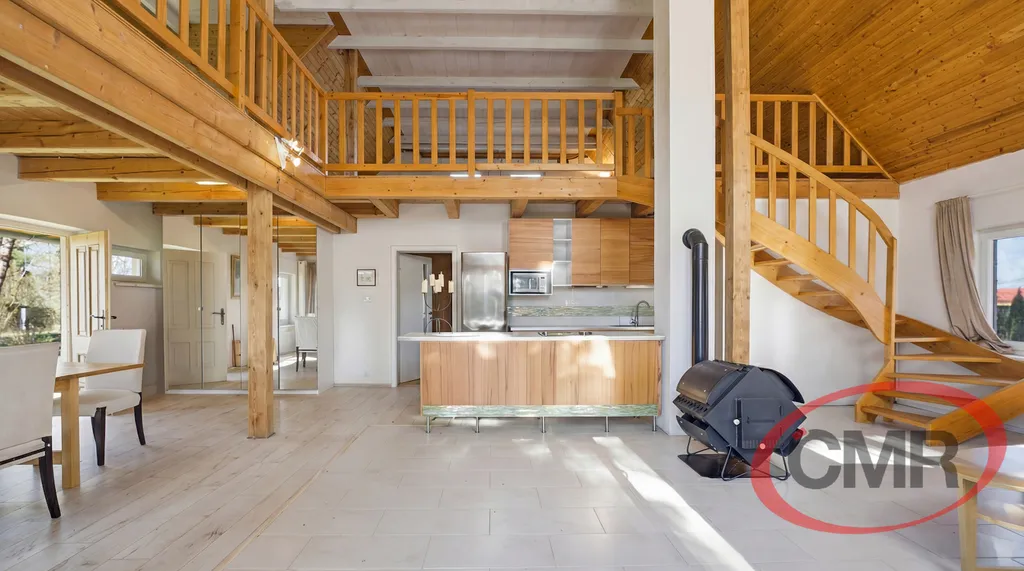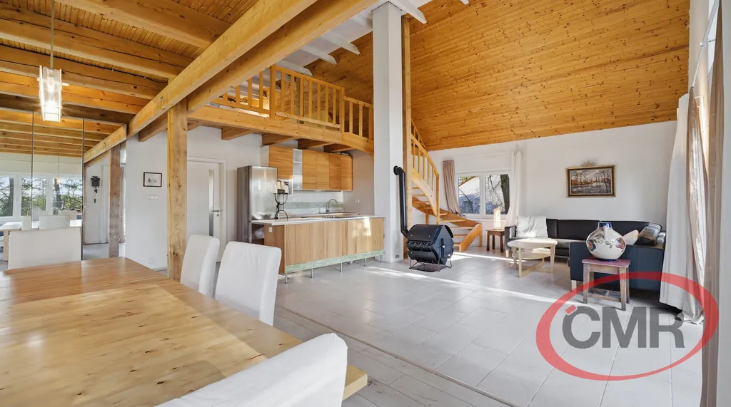 Nabízíme k prodeji jedinečnou nemovitost v klidné, vyhledávané lokalitě nedaleko Prahy, Malá Hraštice, okres Příbram obklopenou krásnou přírodou a vzrostlými stromy. Tento stylový, nadčasový objekt stojí na vlastním velkorysém pozemku o rozloze 4071 m2, který zajištuje soukromí a prostor pro relaxaci. Dominantou domu je vzdušný otevřený obytný prostor s vysokými stropy, dřevěnými prvky a galerií, která dodává interiéru jedinečný charakter. Velkoformátová okna a francouzské dveře krásně propojují interiér se zahradou a zajišťují dostatek přirozeného světla. V zadní části je samostatná prostorná ložnice se šatnou a vstupem na zahradu a koupelna s vanou, bidetem a WC. Z obývacího pokoje je vstup na terasu orientovanou do zeleně ideální pro posezení s rodinou či přáteli. Okolní lesy a příroda přímo vybízejí k procházkám, odpočinku i aktivnímu trávení volného času. Nemovitost představuje ideální kombinaci klidného bydlení nebo rekreaci v přírodě s dobrou dopravní dostupností do Prahy. Velkou výhodou je přímé spojení vlakem do Prahy na hlavní nádraží, busem, autem cca 30 - 40 min. Veškerá občanská vybavenost je v nedalekém Mníšku pod Brdy. Vřele doporučuji prohlídku.
