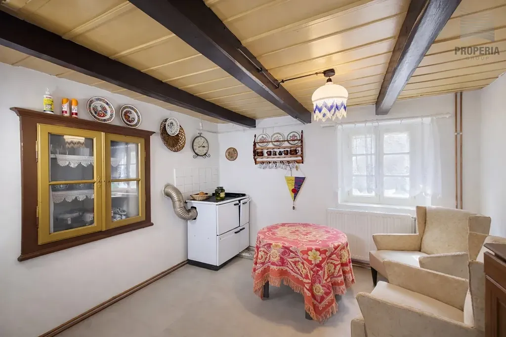 Vstupte do interiéru, který dýchá původním kouzlem. Najdete zde betonové podlahy a již rozvedené ústřední topení, které zajistí teplo v celém domě včetně podkroví. Dispozice je promyšlená a velmi rozumná, kdy vše, s výjimkou toalety, je pohodlně dostupné z centrální předsíně či chodby. Přízemí nabízí plochu kolem 44 m², zatímco podkroví 51 m². Celková užitná plocha tak dosahuje cca 95 m².