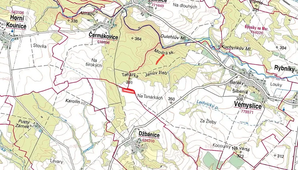V katastrálním území Vémyslice je k prodeji vlastnictví na lesních pozemcích parc. č. 1936/1 a 1936/2.