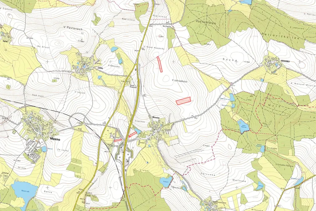 -> pozemky v rovinatém terénu, vhodné pro efektivní hospodaření