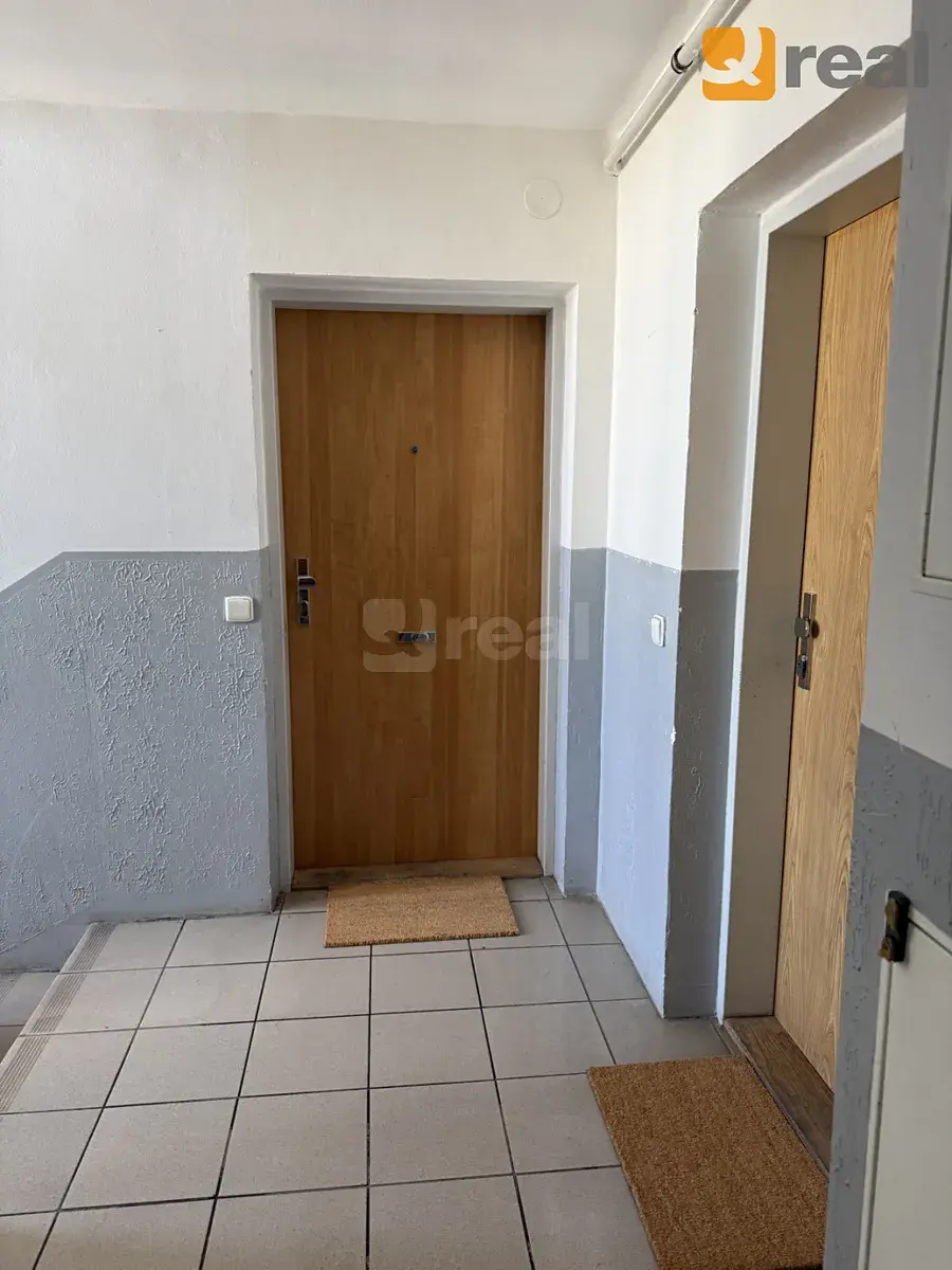 Vstupní chodba s vestavěnou skříní, komora a samostatné WC. Obývací pokoj s jídelním a pracovním koutem je propojen s plně vybavenou kuchyní (nová lednice a mrazák, plynový sporák, trouba, myčka, mikrovlnka, nádobí). Z obývacího pokoje je vstup na zasklený balkon.