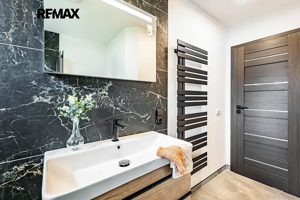 V patře se nachází další ložnice s balkonem, koupelna s vanou, praktický kumbál a tři další místností. V jedné z nich je navíc příprava na druhou kuchyni – ideální pro dvougenerační bydlení nebo při rozdělení domu na dvě bytové jednotky.
