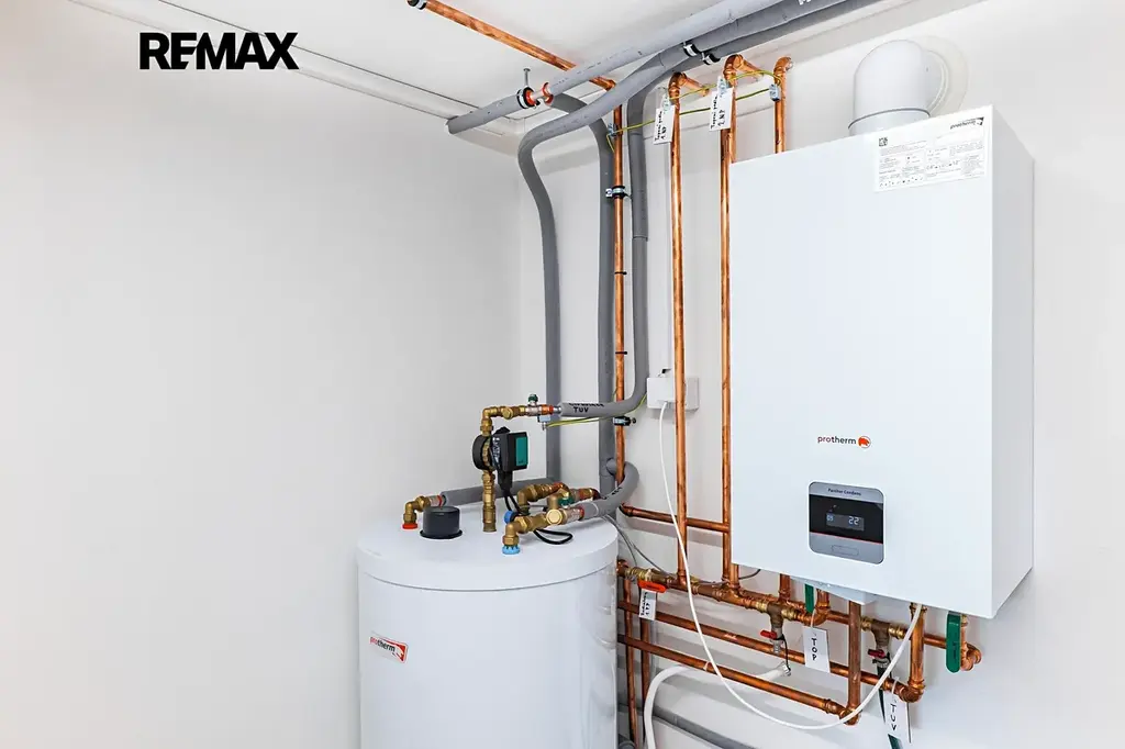 V celém domě je podlahové vytápění, napojené na plynový kondenzační kotel (který slouží i k ohřevu vody) s možností ovládání přes mobilní telefon. Okna chrání venkovní rolety, nechybí příprava na fotovoltaiku a je tu i příprava na připojení kotle na tuhá paliva. Všechny rozvody jsou zbrusu nové – topení a elektřina v mědi, voda v Alpexu, odpady v plastu. Dům je napojený na obecní vodovod a kanalizaci. Na zahradě je studna s užitkovou vodou. Stavba je precizně odizolovaná a zateplená (16 cm polystyren). Zatepleny jsou i všechny stropy včetně těch sklepních. Všude v domě je rozvedený internet za pomoci routerů. Do domu je dovedený i kabel od CETINu.