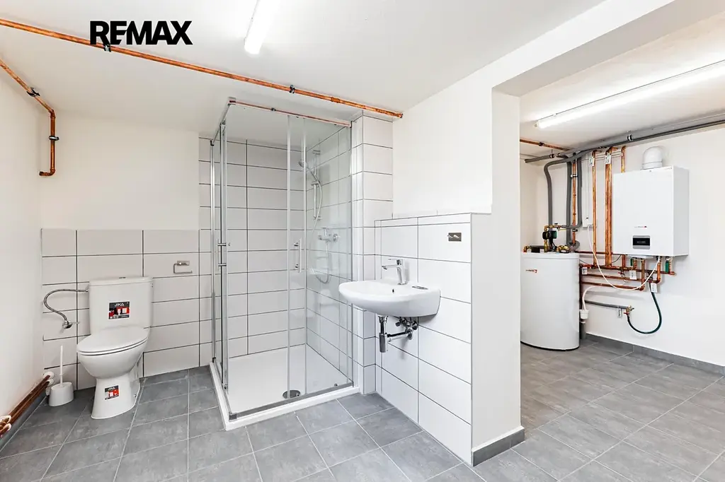 V suterénu najdete garáž (přičemž parkovat lze i na parkovišti u domu), technické zázemí, dostatek úložného prostoru a navíc spoustu místa třeba pro domácí posilovnu nebo saunu. Nechybí zde ani sprcha s toaletou, kterou můžete využít mj. na umytí domácích mazlíčků.