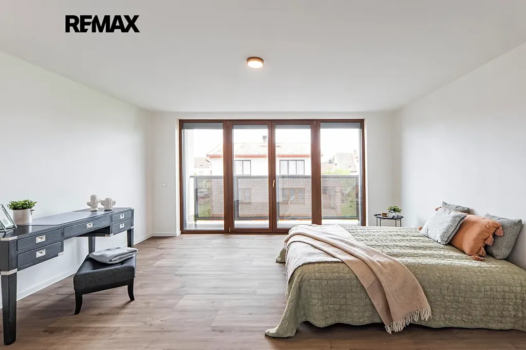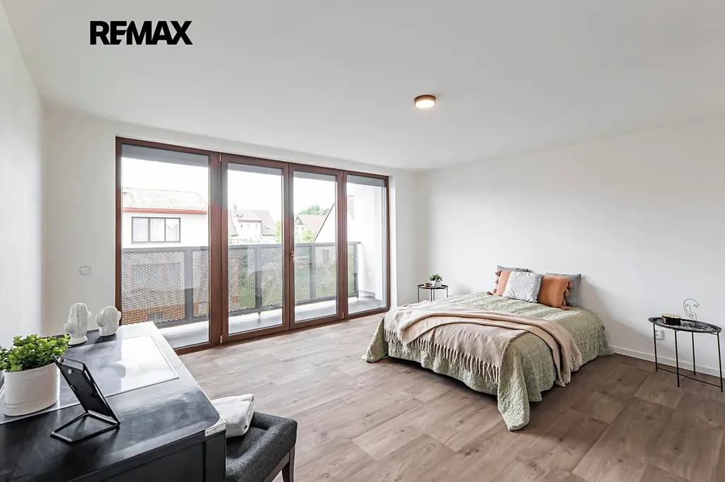 První nadzemní podlaží nabízí elegantní ložnici s vlastním balkonem, koupelnu se sprchovým koutem, samostatné WC a hlavní obytnou část propojenou se stylově řešenou kuchyní a jídelnou. Samozřejmostí jsou špičkové spotřebiče, vestavěná vinotéka a praktická spižírna.
