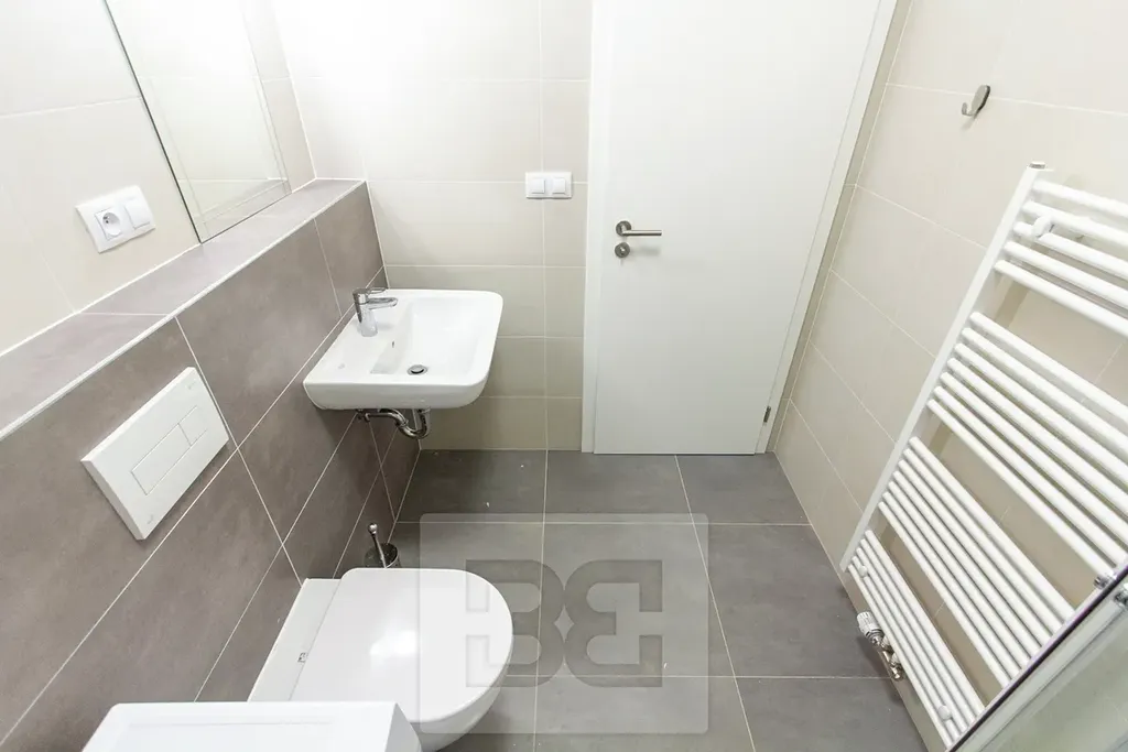 Koupelna je vybavena sprchovým koutem, umyvadlem, zrcadlem, topným žebříkem a WC, k dispozici je také pračka. Byt má plastová okna a jeho velkou výhodou je klimatizační jednotka.