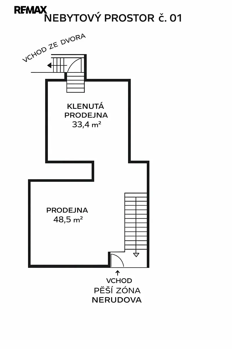 Nabízím k pronájmu obchodní prostory v centru města Písku na pěší zóně v Nerudově ulici o výměře 82 m2. Jedná se o historické prostory se zachovalými prvky gotického měšťanského domu, který zde dříve stál. Vchod s výlohou přímo z ulice Nerudova, je možné používat i další vchod přes otevřený dvůr domu, stejně jako dvůr samotný a sociální zázemí s dvěma WC. V minulosti byly prostory využívány např. jako prodejna dekorativního skla, bytových doplňků či jako prodejna karibských rumů. Mohou však být upraveny pro jiná využití.