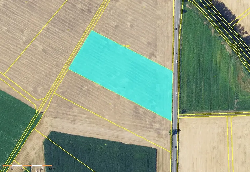 6. p.č. 2669 o velikosti 17.457 m2; podíl 1/6 činí 2.909,5 m2 s dobrou bonitou. Pole je přístupné po komunikaci na parcele č.2685 ve vlastnictví obce.