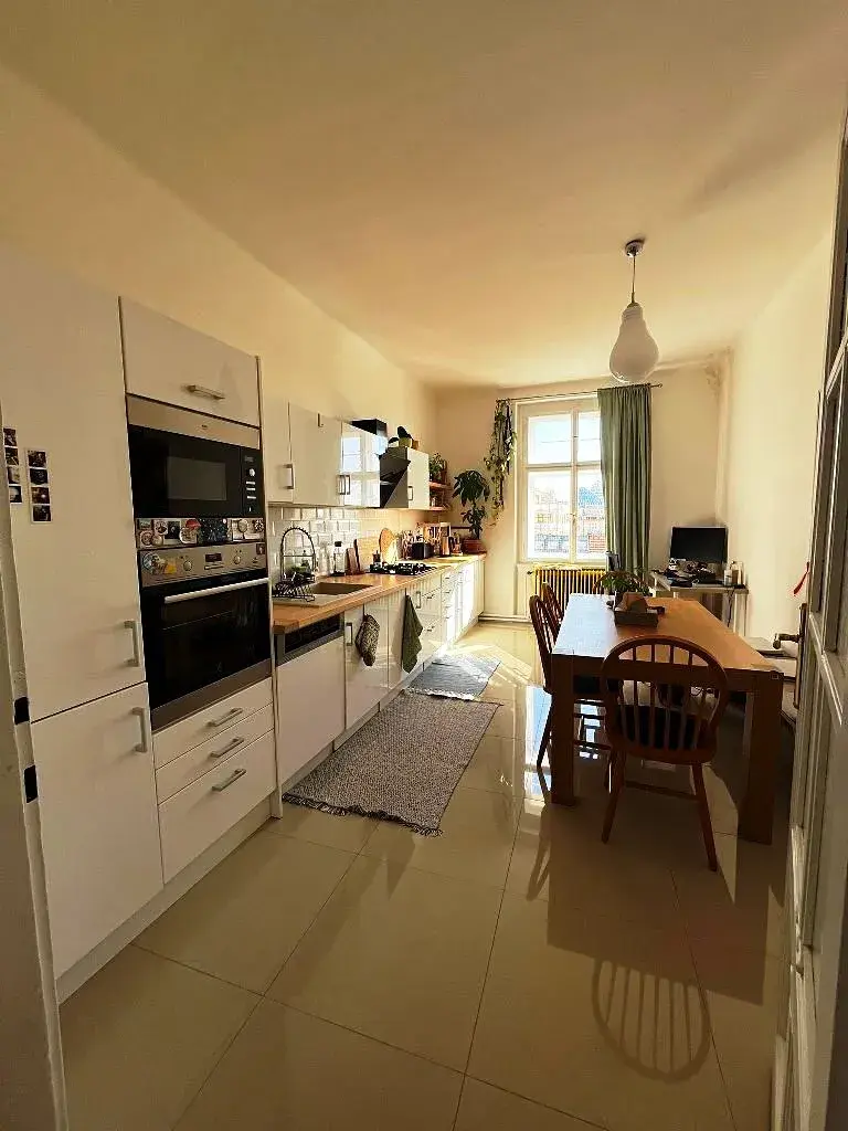 Velkou výhodou je výjimečná poloha bytu: nachází se jen pár minut chůze od stanice metra Flora (linka A). Okolí nabízí veškeré potřebné služby: obchody, kavárny, restaurace, bary, školy, farmářské trhy a další služby v bezprostřední blízkosti.