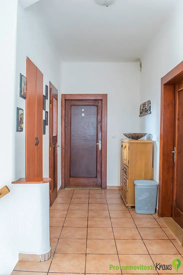 Dispozice domu je 2+1 v přízemí a 4 další pokoje v podkroví. Podkroví je z větší části plnohodnotné a nabízí terasu nad vchodem. Koupelna s vanou i sprchovým koutem v přízemí, 2x WC. Celkově je dům vhodný i pro větší rodinu. Sklepní prostory poskytují dostatečné úložné prostory.