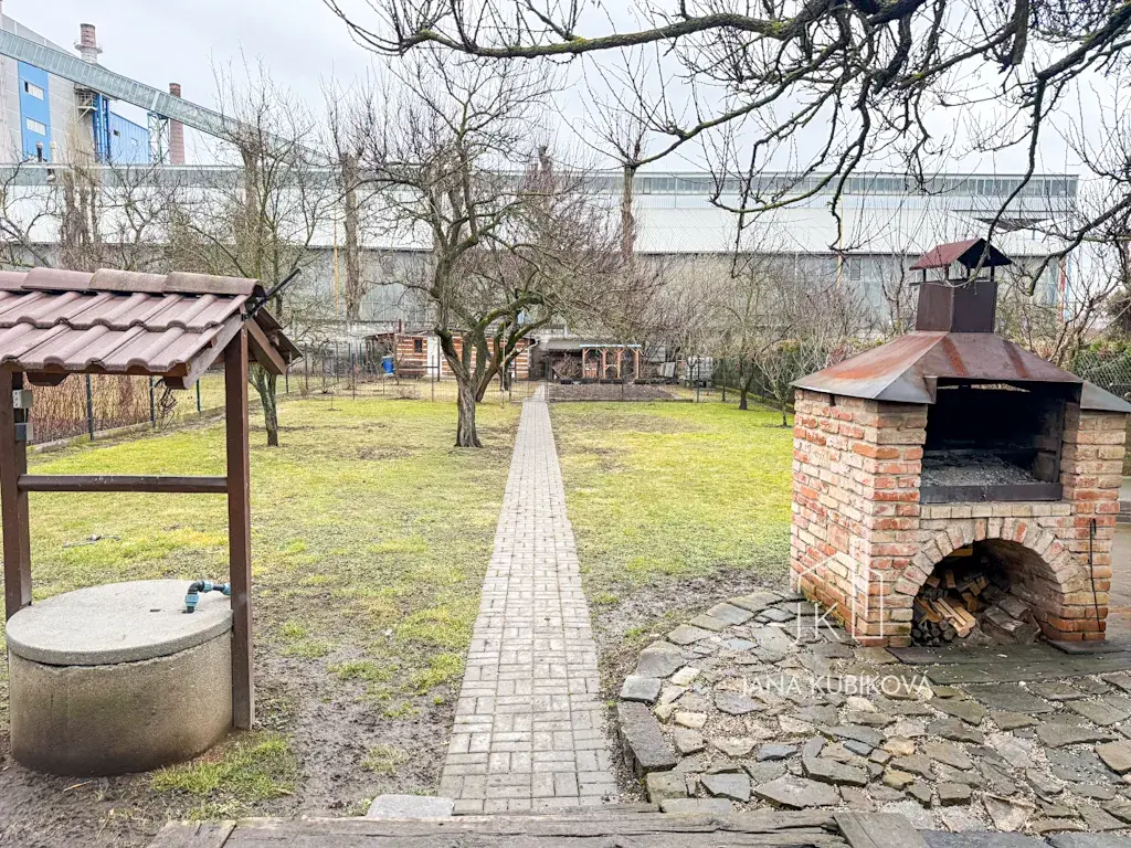 Zastavěná plocha a nádvoří činí 429 m², zahrada má výměru 770 m² a je krásně rovinatá. Velkou výhodou je vstup do domu jak z přední, tak ze zadní části, což umožňuje praktické oddělení jednotlivých částí nemovitosti.