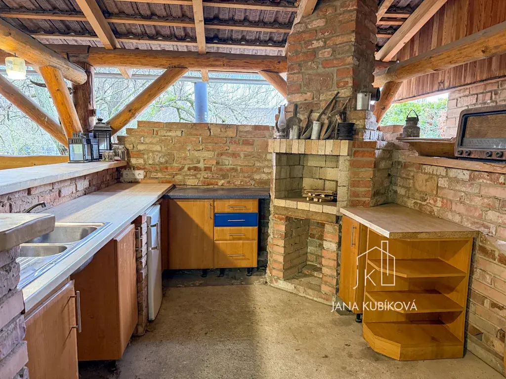 Na dvoře je pergola s letní kuchyní a samostatnou toaletou. Posezení je dimenzováno až pro cca 35 osob, což nabízí výjimečný prostor pro rodinné oslavy, setkání s přáteli či společenské akce.